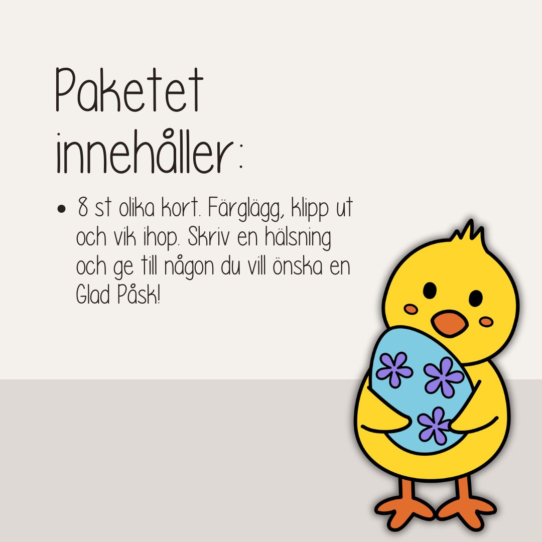 Perfekt för dig som söker påskpyssel för barn, påskkort att färglägga, pyssla egna påskkort eller utskrivbara påskkort att skriva ut hemma eller i skolan.