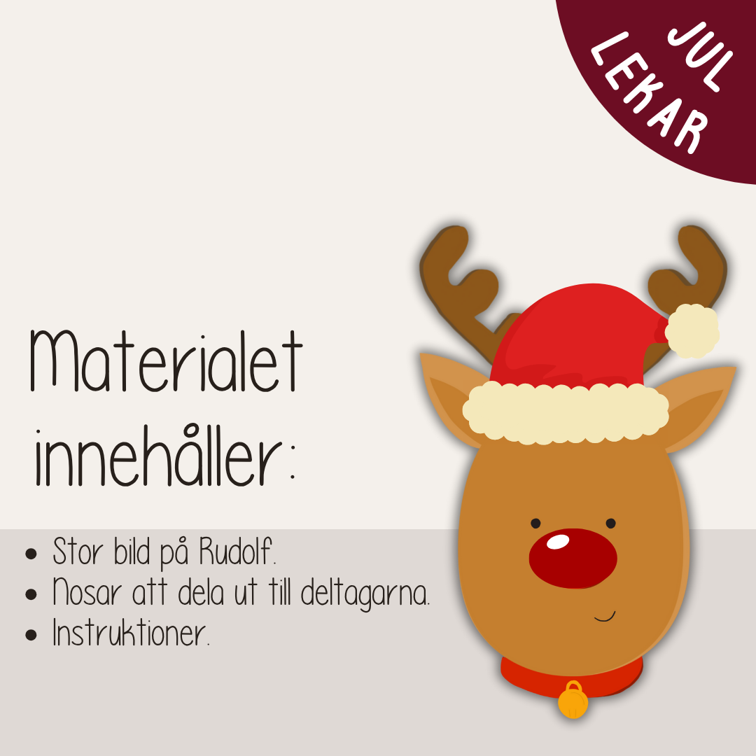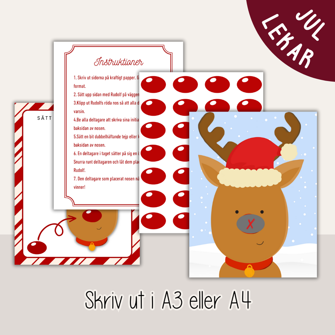 Ett klassiskt lekfullt inslag till julfirandet! I den här versionen får Rudolf sin röda nos – om deltagarna prickar rätt förstås. Perfekt till julkalaset, familjekvällen eller som en skärmfri paus i väntan på tomten.