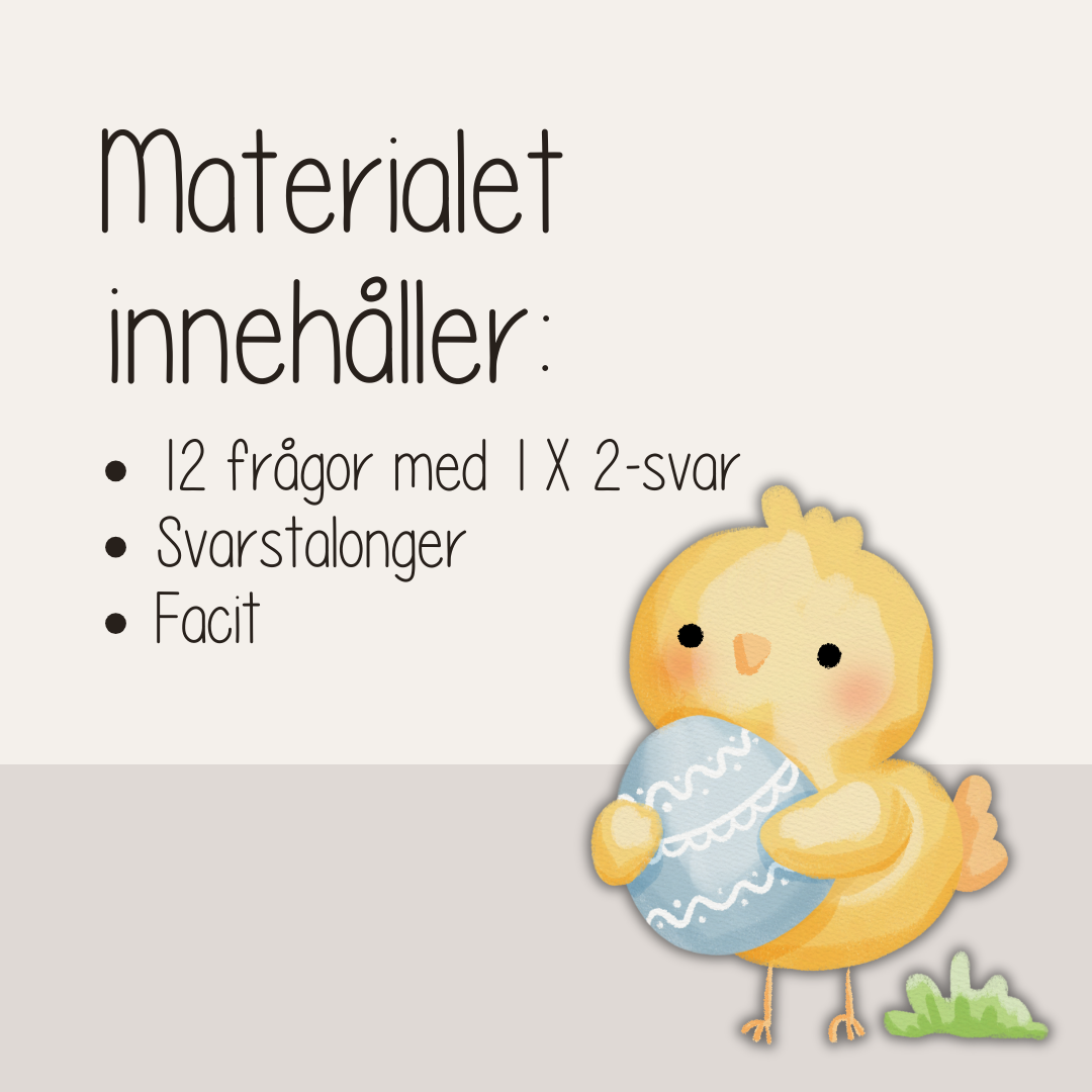 Perfekt för dig som söker tipspromenad påsk, påskquiz för barn, frågor om påsken eller påskaktivitet att skriva ut.
