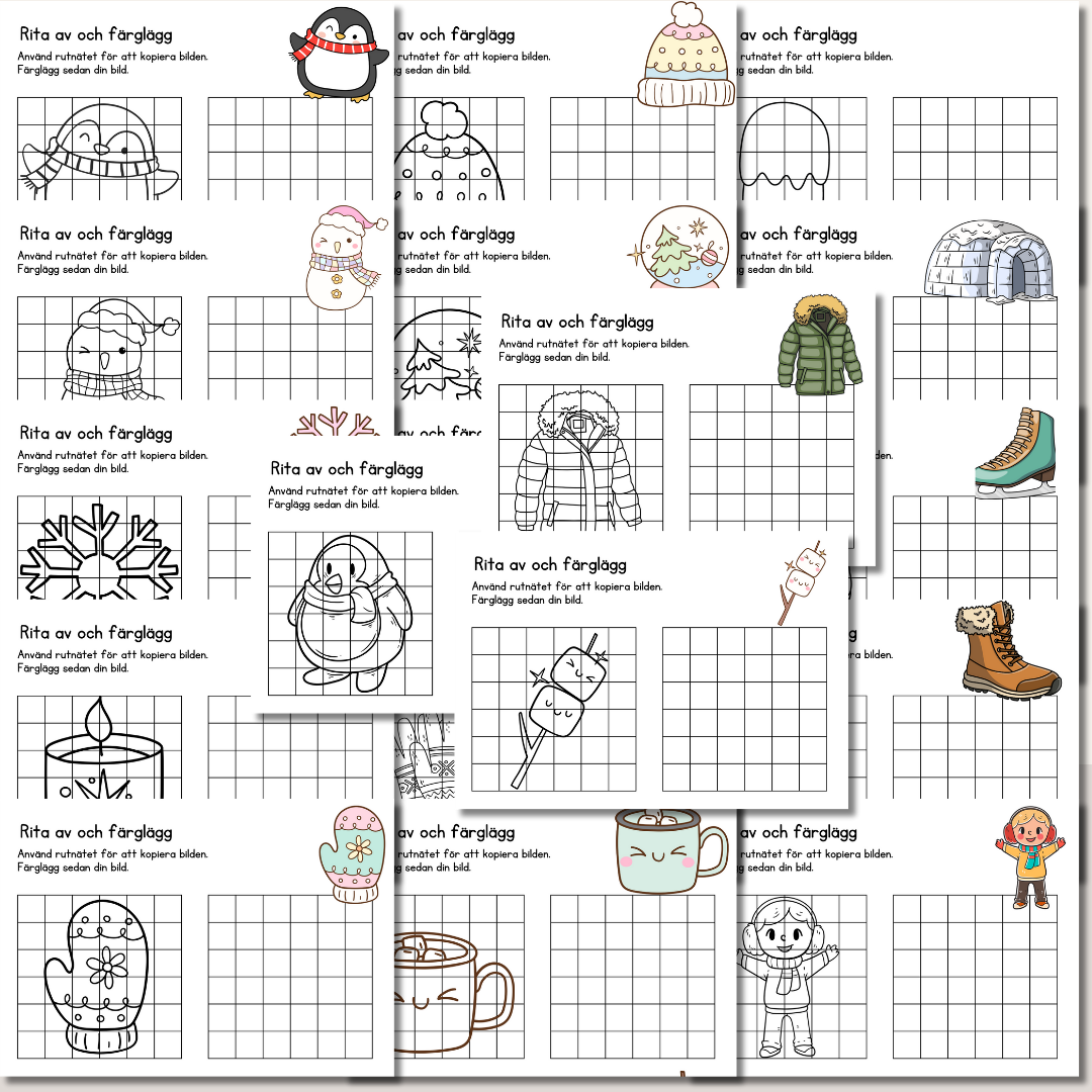 Ett lugnt och kreativt vinterpyssel där barnen får träna på att rita av bilder med hjälp av ett rutnät och sedan färglägga motivet. Ett roligt sätt att öva koncentration, noggrannhet och bildskapande under vintern.